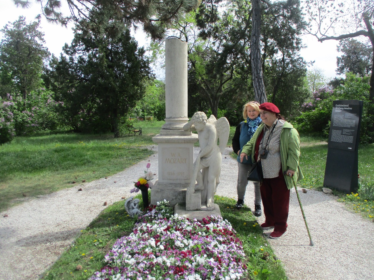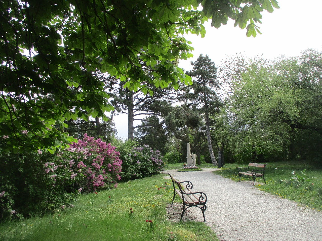 Minulý týden jsme navštívily Vídeň. Ještě před odjezdem z Prahy nás vídeňští přátele upomínali na to, abychom nezapomněly navštívit hřbitova Sv. Marka/St.Markus-Friedhof ve 3. vídeňském okrsku, že už začínají kvést šeříky. Jak jsme pak pochopily, je to pro Vídeňáky v podstatě „mus“ – hřbitov, který posledně vypadal zimně a smutně (na Mozartovy narozeniny v lednu), měl teď úplně jinou tvář – jarní a slavnostní. (obr.1) Byl plný lidí, kteří posedávali na lavičkách na sluníčku, nebo se procházeli a čichali ke kvetoucím šeříkům různých barev. Radost měly evidentně i včelky z úlů umístěných blízko Mozartova náhrobku (obr.2).