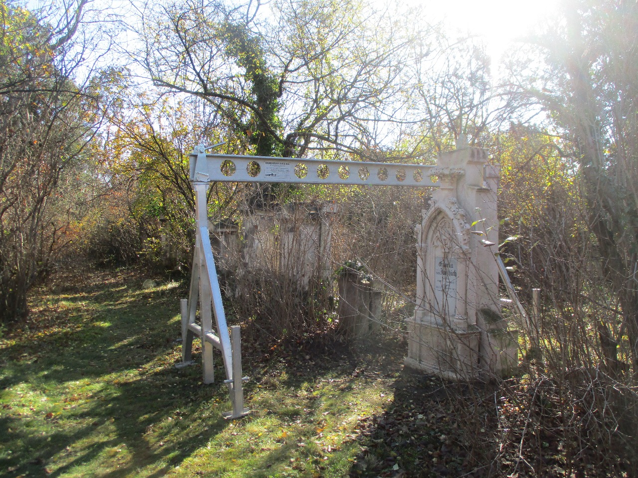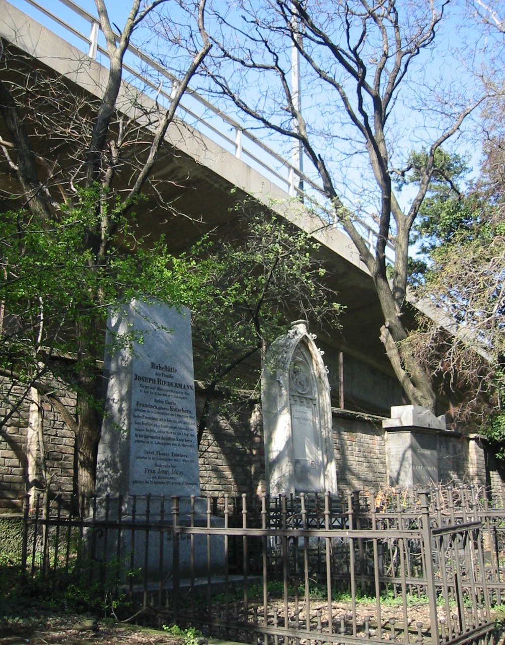 Jaké byly poválečně osudy hřbitova? Stejně jako u MH došlo i u něj v 50. letech ke zmenšení plochy – prodloužený silniční okruh vedoucí Landstraße měl vést přes severní část hřbitova. Po zrušení severní části hřbitova magistrát změnil svůj záměr. Bylo rozhodnuto, že prodloužení silničního okruhu a jeho spojení s dálničním okruhem „Vídeň Jih“ proběhne na jihu hřbitova. Tam také vznikla o několik let později dálnice A 23, což si vyžádalo opětované zmenšení plochy hřbitova. (obr. 3) V roce 1996 byla z iniciativy Spolkového památkového úřadu vypracována koncepce sanace hřbitova a byla provedena experimentální restaurace dvou náhrobků. V srpnu 2005 vydal vídeňský magistrát rozsáhlý balíček opatření pro udržení a zlepšení stavu tohoto památkového pohřebiště. Hlavní důraz byl přitom kladen na restauraci pískovcových náhrobků a jejich nápisů, hroby měly být nově očíslovány a opatřeny mosaznými tabulkami se jmény. Jak jsme se mohly přesvědčit, probíhá rekonstrukce hřbitova velmi úspěšně. (obr. 4) Na snímku můžeme vidět např. rekonstruovaný náhrobek duchovního Michaela Fesla (1788-1863), Bolzanova žáka a oblíbence litoměřického biskupa J. F. Hurdálka. (obr. 5)